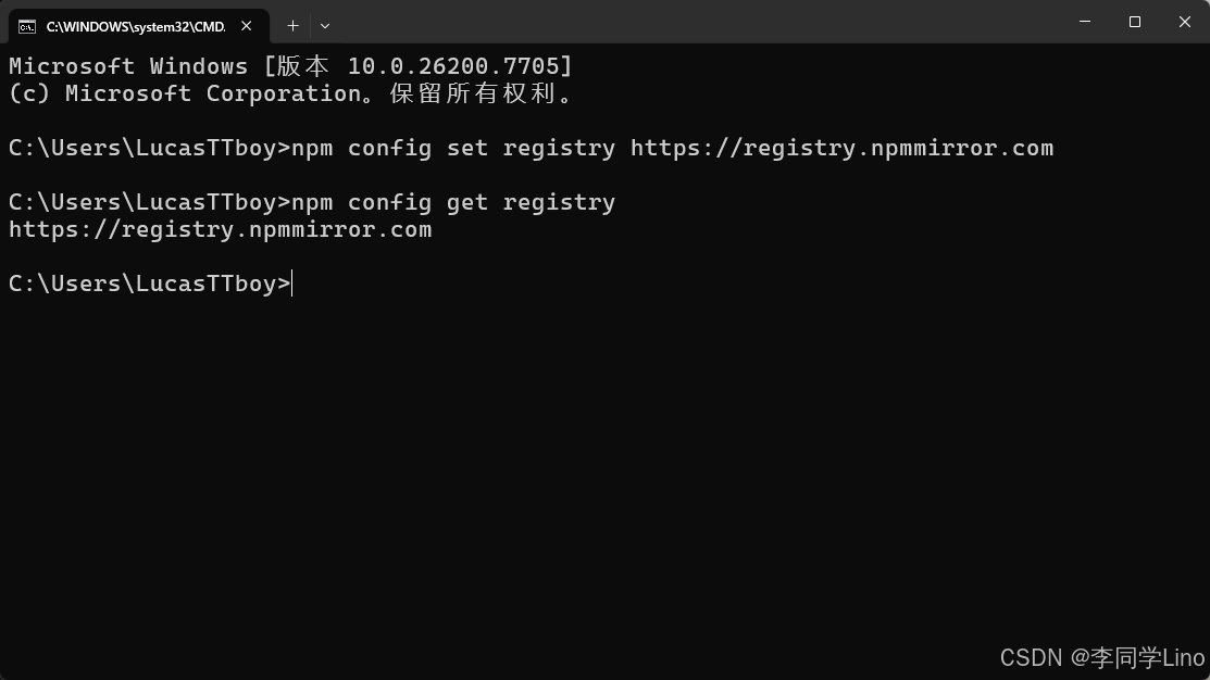 如果返回 https://registry.npmmirror.com/,说明提速成功!