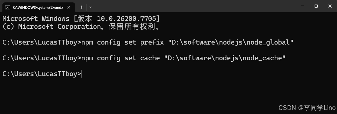 这一步最重要!我们要把 npm 全局安装的包和缓存文件,也从 C 盘迁移到我们刚才安装的目录下,方便管理。