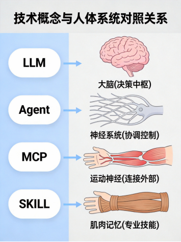 从大脑到四肢:LLM、Agent、MCP、SKILL的协同进化