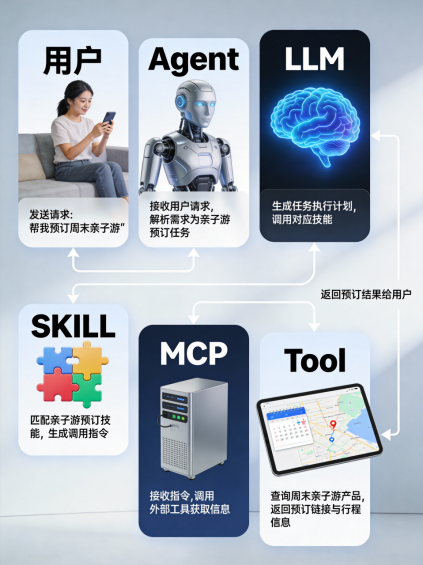 这就像肌肉记忆:当你要喝水时,你不需要思考"如何控制手臂的肌肉收缩",你的身体自动就完成了。SKILL就是让Agent"自动"完成复杂的工具调用。