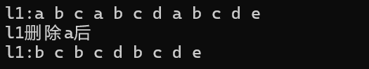 cout << "l1删除a后" << endl;