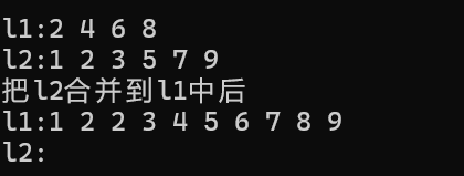 cout << "把l2合并到l1中后" << endl;
