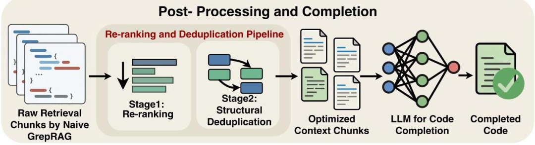 基于上述分析,研究者提出了 GrepRAG,在 Naive GrepRAG 的基础上增加了两个级联的后处理步骤: