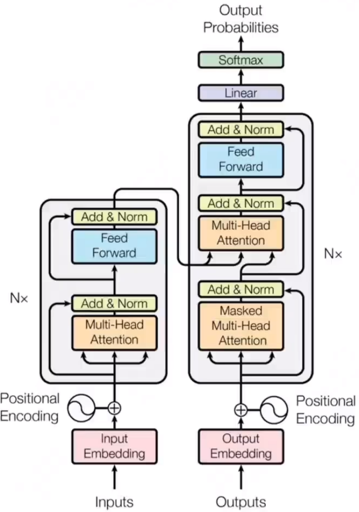 解码器:输出前经过一层线性变换的神经网络,投射到词表向量中,最后用softmax层转化为概率