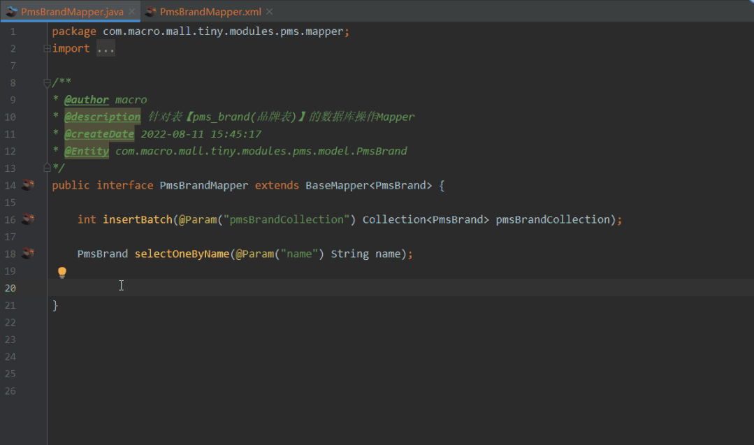 使用 接下来介绍下MybatisX的使用,这里以我的脚手架项目mall-tiny为例。