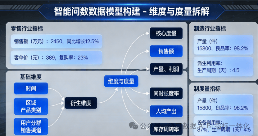明确分析主题:零售分“门店运营、商品补货、促销效果”;制造分“订单排产、产能优化、质量管控”,每个主题对应核心指标。