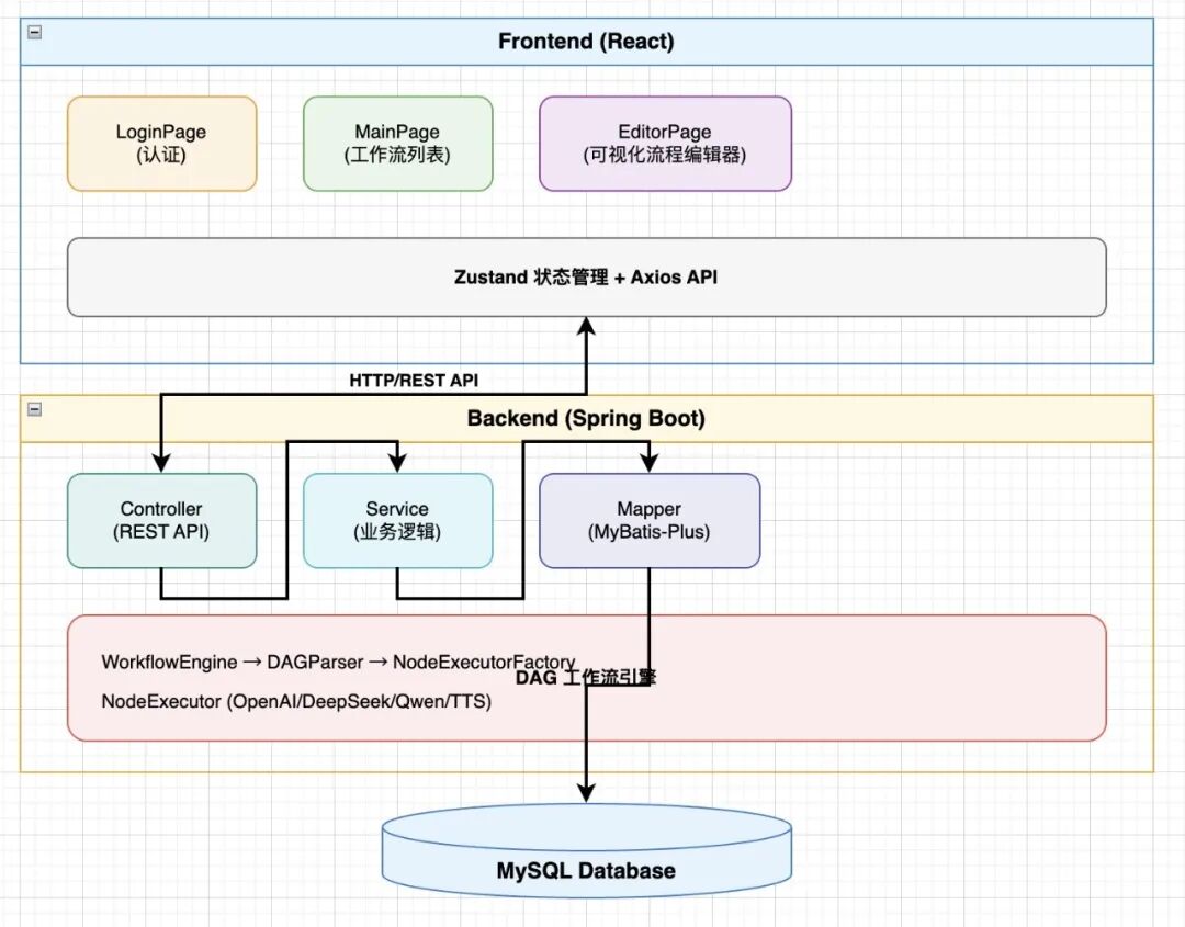 项目简介: 基于 DAG(有向无环图)的 AI Agent 工作流可视化编排平台,支持通过拖拽式界面设计复杂的 AI 处理流程,实现大模型调用、音频合成等多节点协同工作。