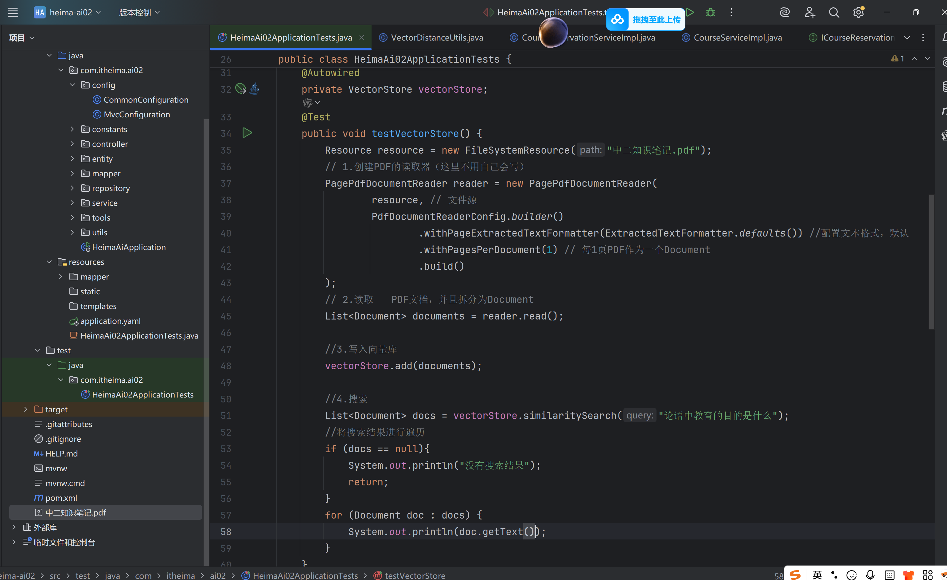 需要先实现一个上传PDF的接口,在接口中实现下列功能: