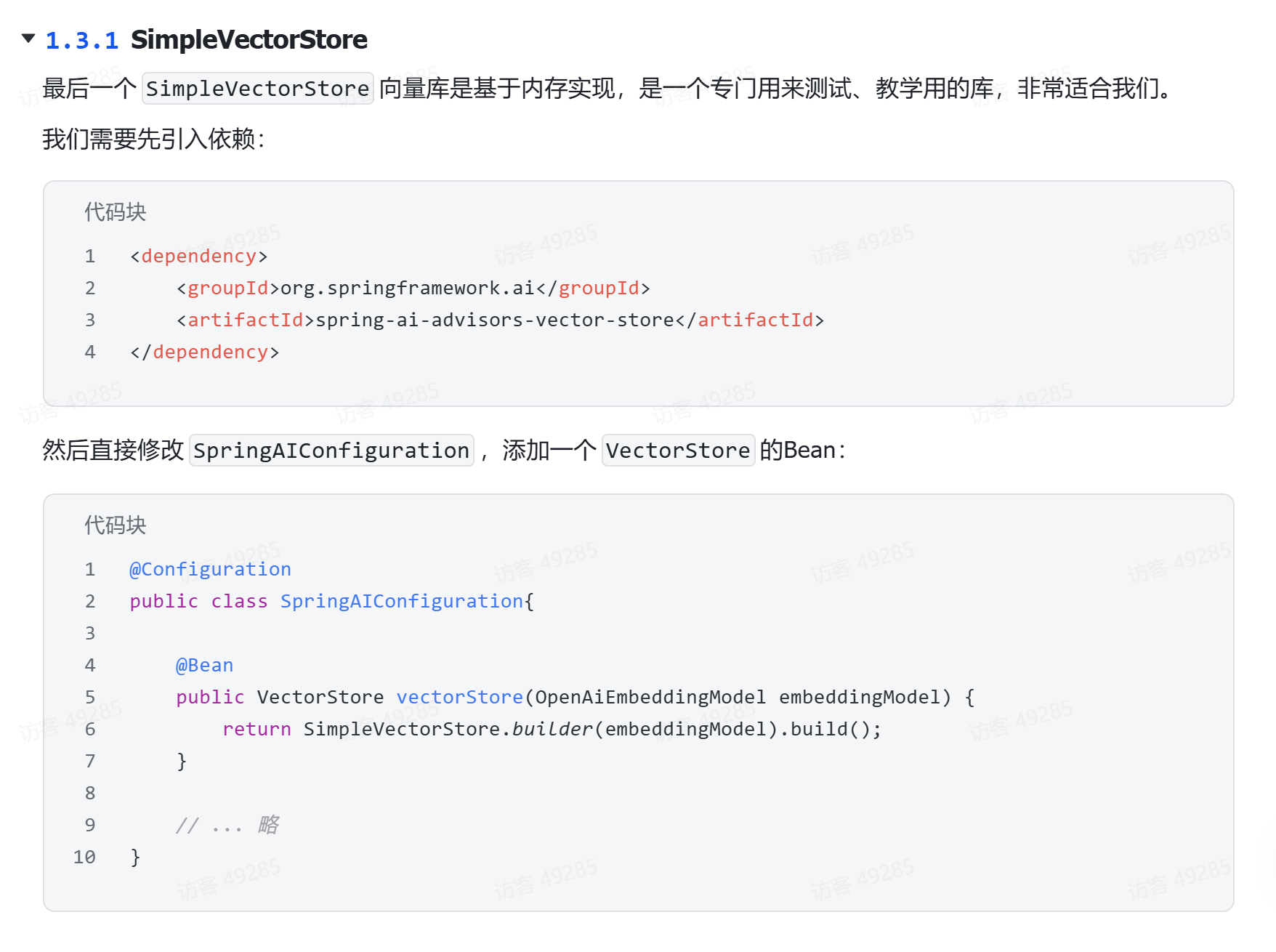 SimpleVectorStore向量库是基于内存实现,是一个专门用来测试、教学用的库。