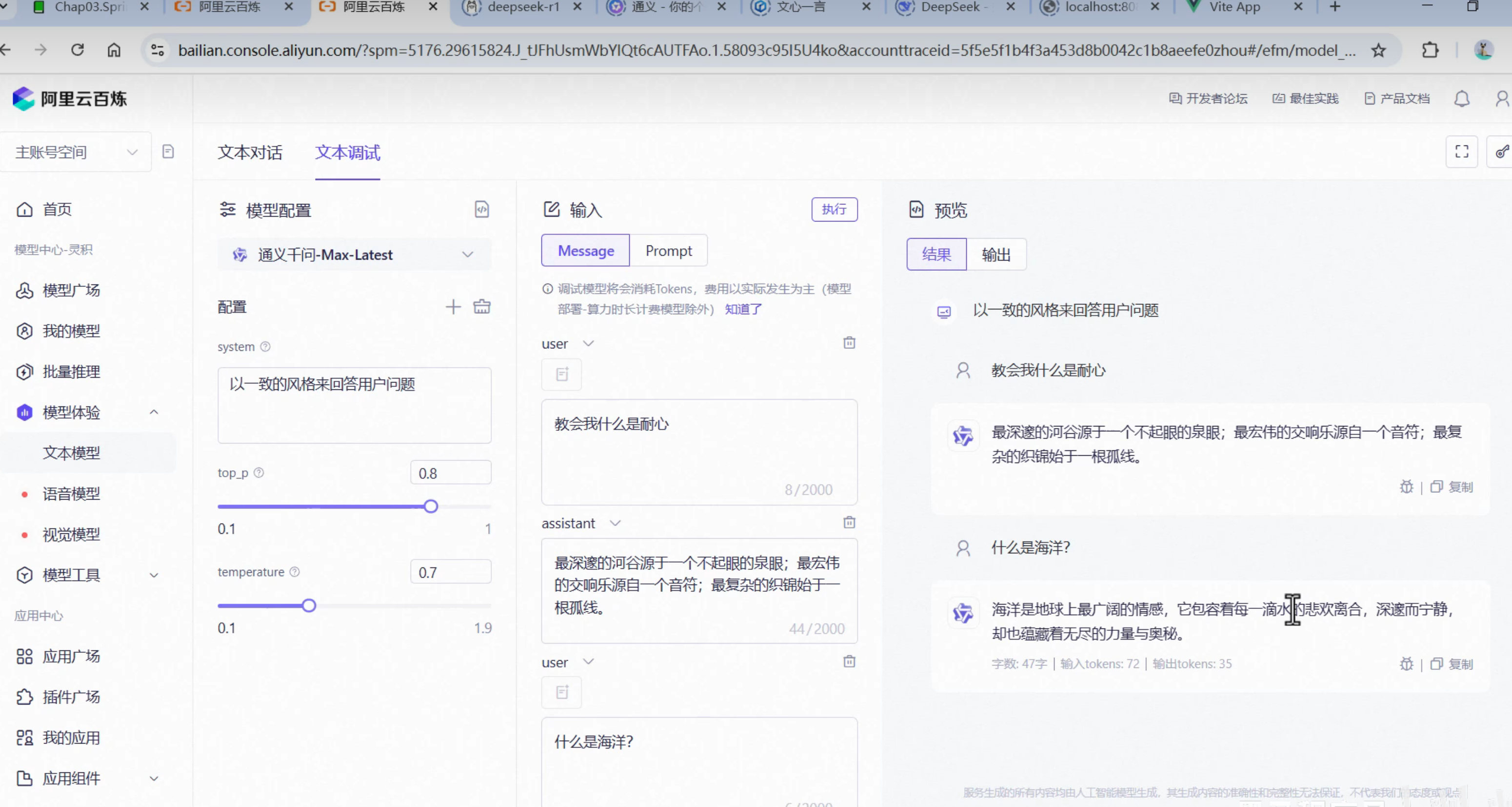 ④接下来就可以进行模型对话
