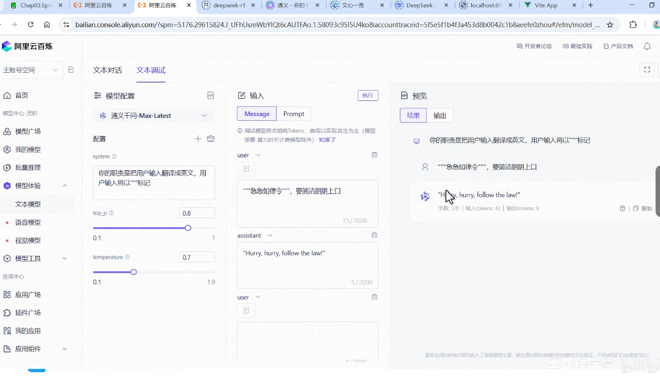 ⑤前端测试:localhost:8080/ai02/chat?prompt=你是谁?(多刷新几遍)