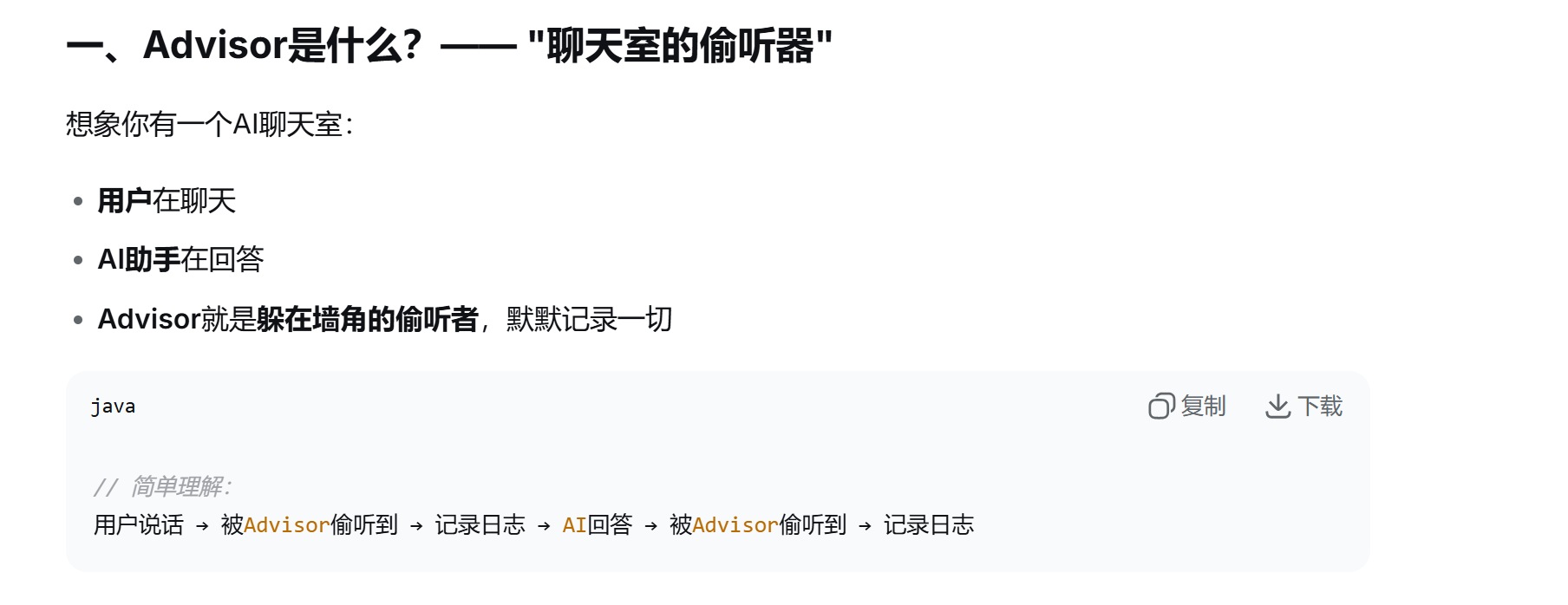 SpringAI利用APO原理提供了会话的拦截,增强功能,也就是Advisor。