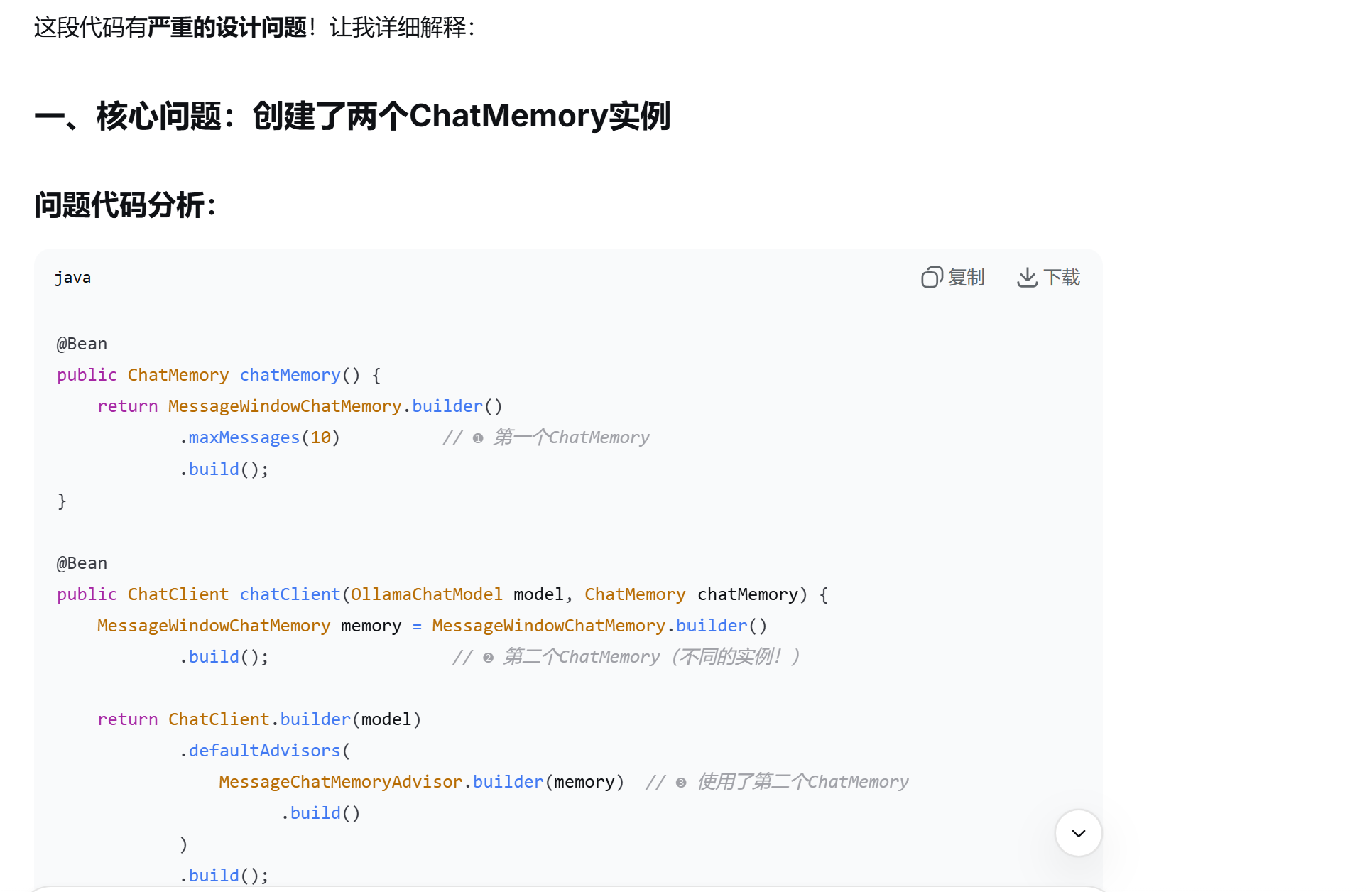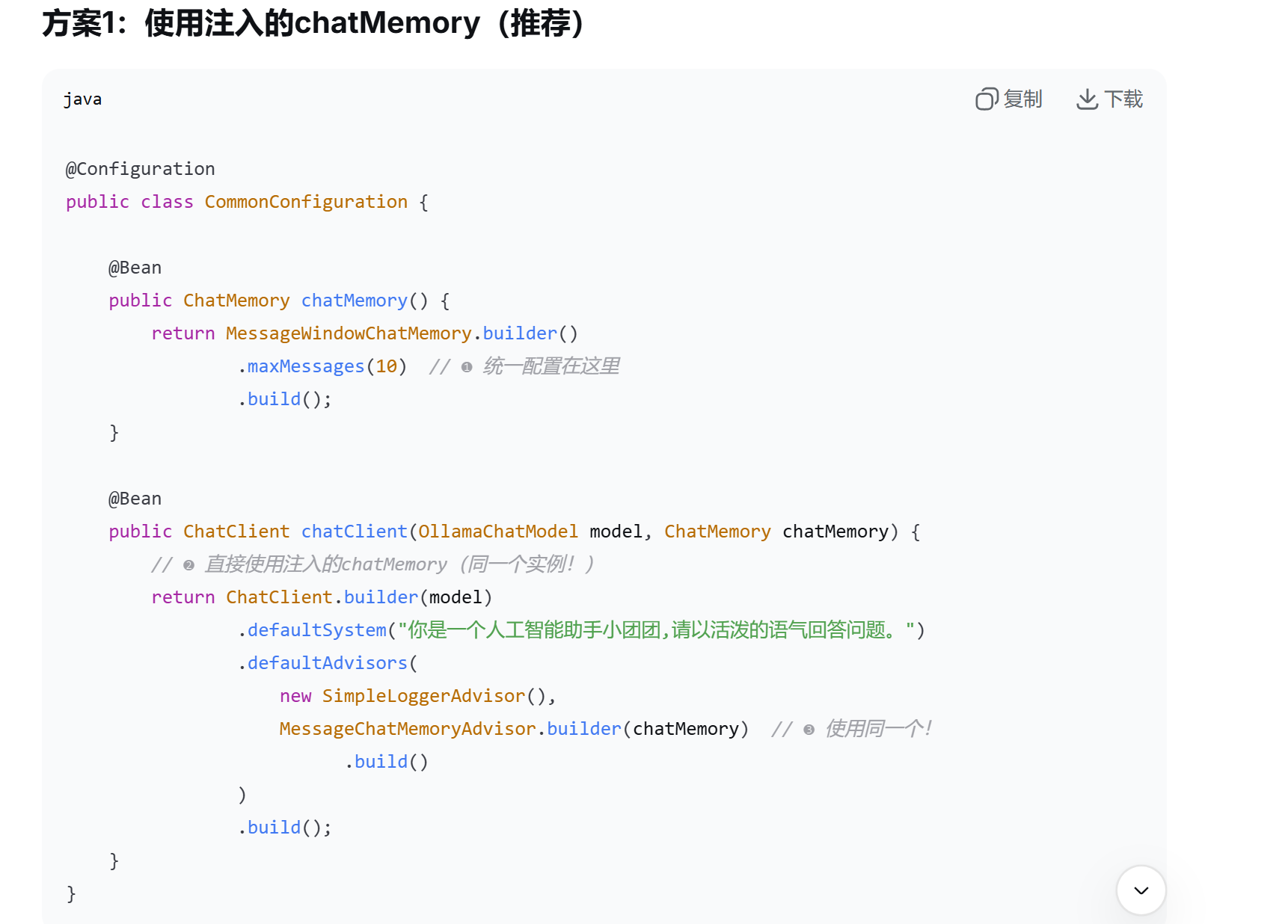 声明一个ChatMemory的Bean,创建ChatMemory的一个实现类对象
