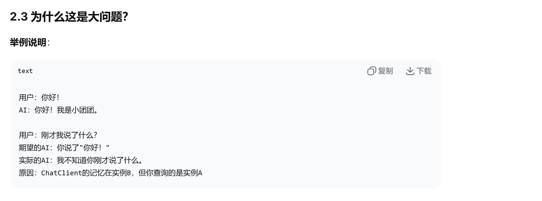 大模型本身没有记忆,需要自己写代码实现,把之前的聊天内容跟最新的提示词一起发给大模型。