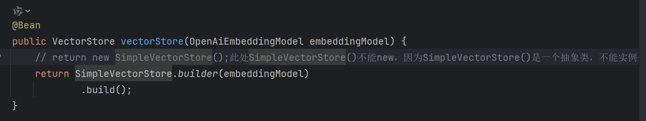 因为SimpleVectorStore()是一个抽象类,不能实例化。要用工厂。