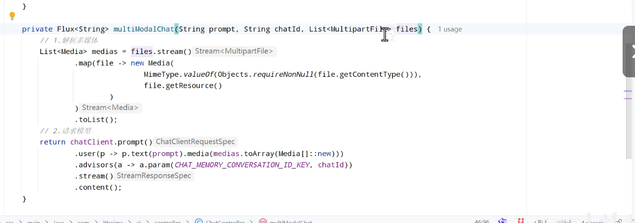 由于解析大模型响应,找到函数名称、参数,调用函数等这些动作都是固定的,所以SpringAI再次利用AOP的能力,帮我们把中间调用函数的部分自动完成了。
