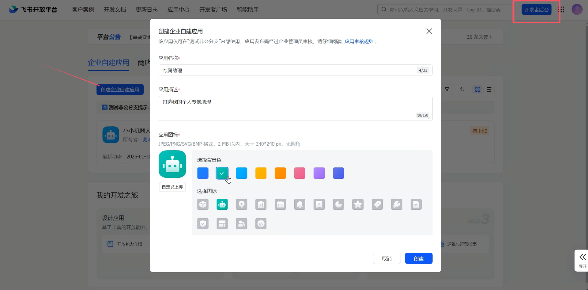3、创建飞书应用