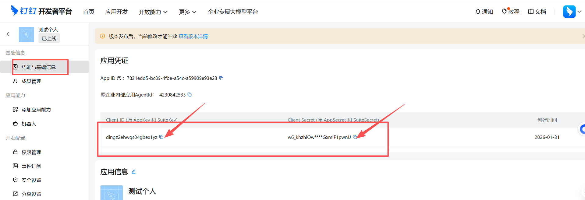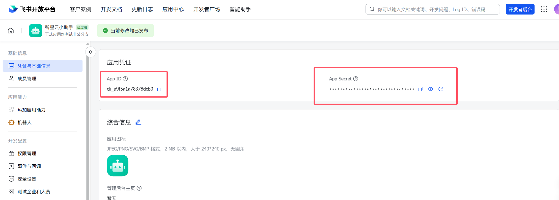9.最后我们复制应用凭证
