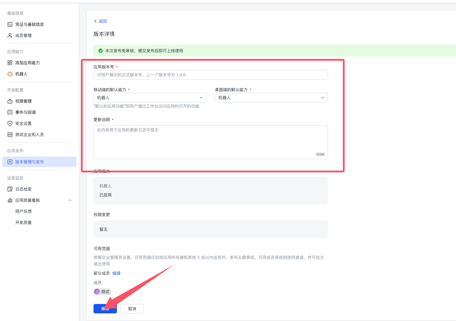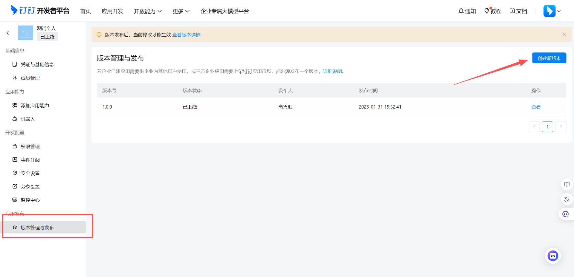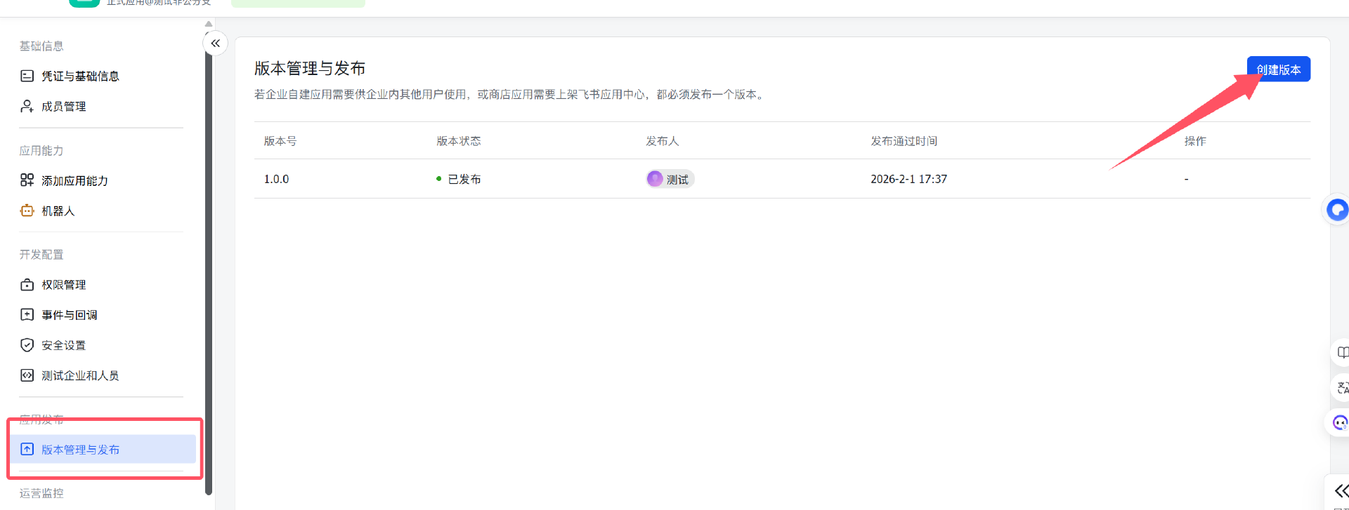 7.完成后我们点击版本管理与发布,进行创建版本