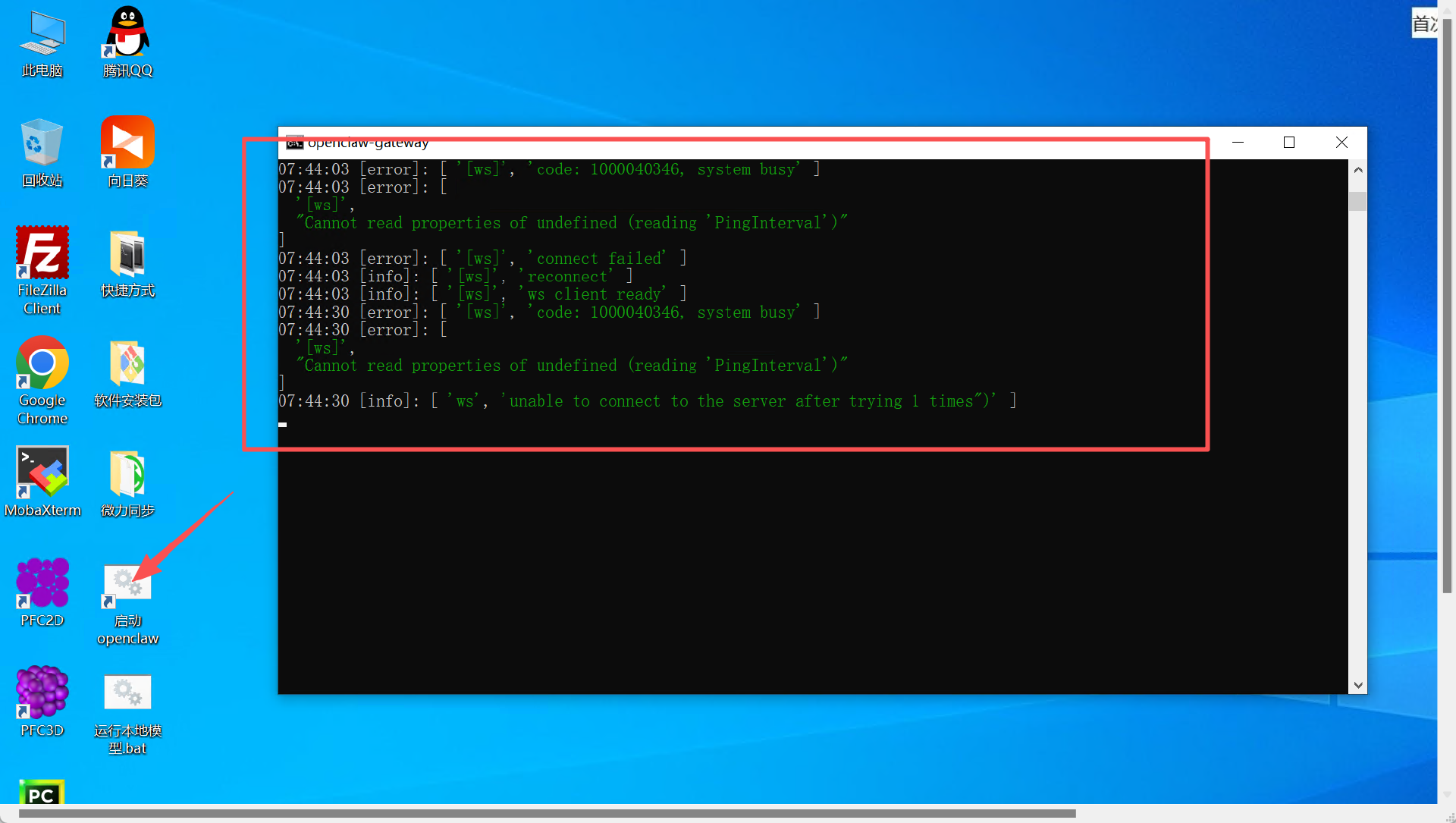 2、启动OpenClaw:双击“启动openclaw”,启动OpenClaw