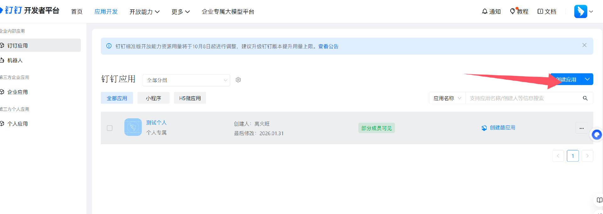 1.进入到钉钉开发者平台 https://open.dingtalk.com/ 登录后进入开发者后台