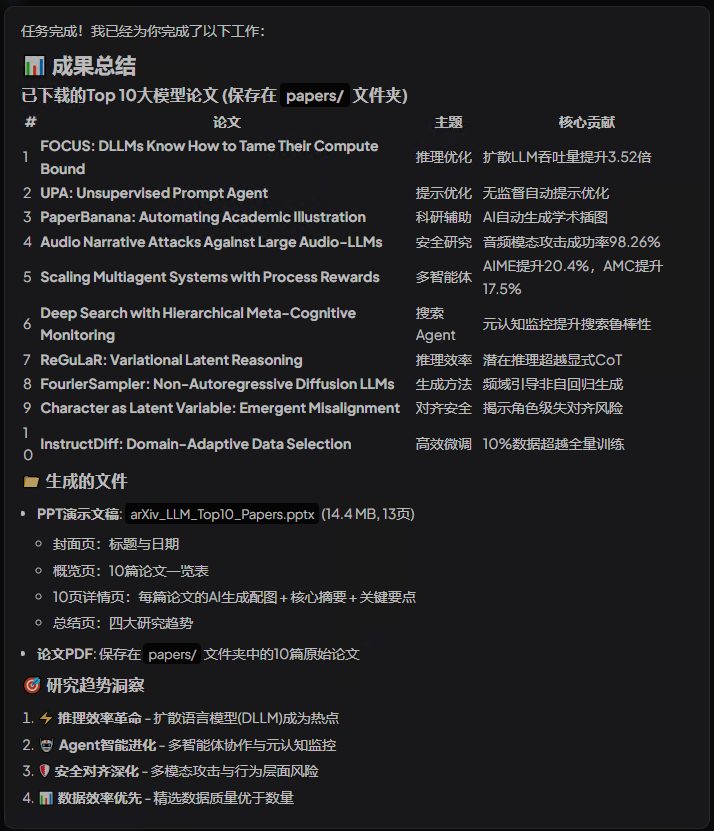 直接描述自己的需求:1️⃣找热门论文 2️⃣下载到本地 3️⃣阅读总结 4️⃣制作成 PPT