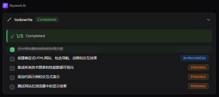 它是智能拆解的,把任务分成了 6 个 Todo,逐步执行