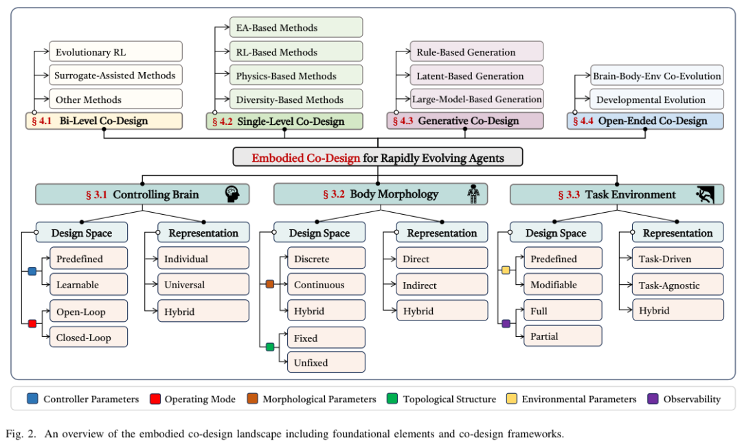 基于形态、控制和环境的交互方式,ECD 演化出了四种主要的协同设计框架:双层协同设计、单层协同设计、生成式协同设计和开放式协同设计。