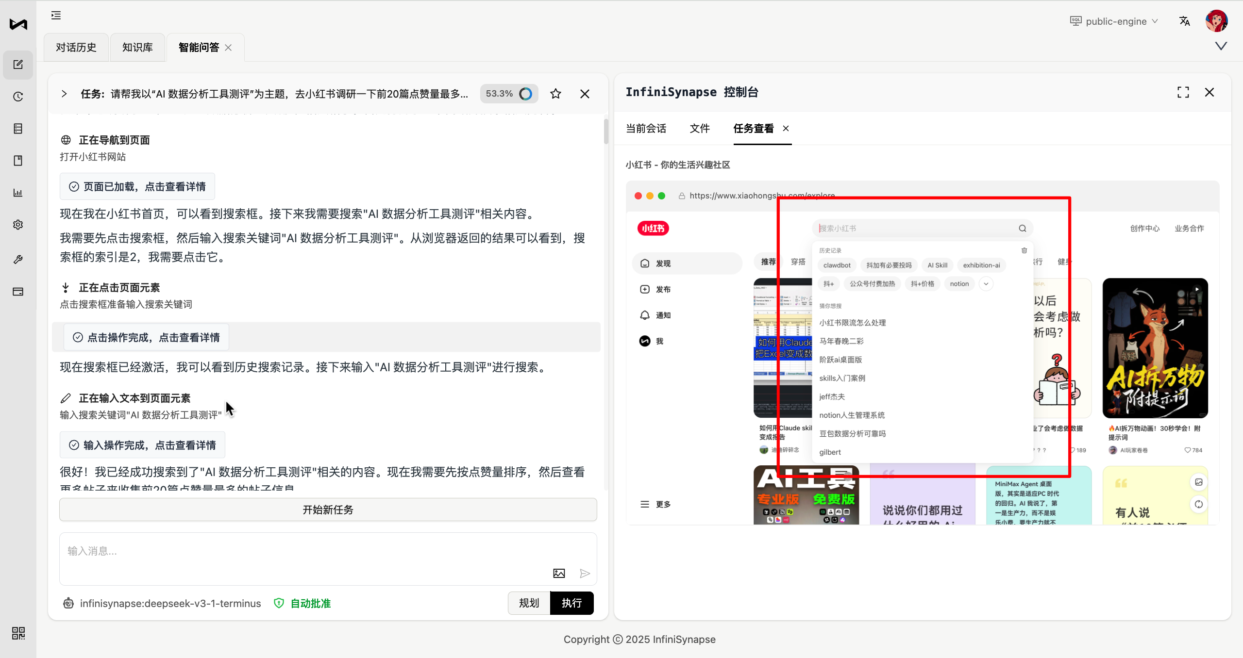 更关键的是,InfiniSynapse 的 Browser Use 功能基于 DeepSeek V3 模型实现,其 API 成本仅为同类产品常用的 Claude 模型的十分之一。这意味着,你可以用极低的成本,将过去需要数小时手动完成的数据采集工作,压缩到几分钟的自动化流程中。