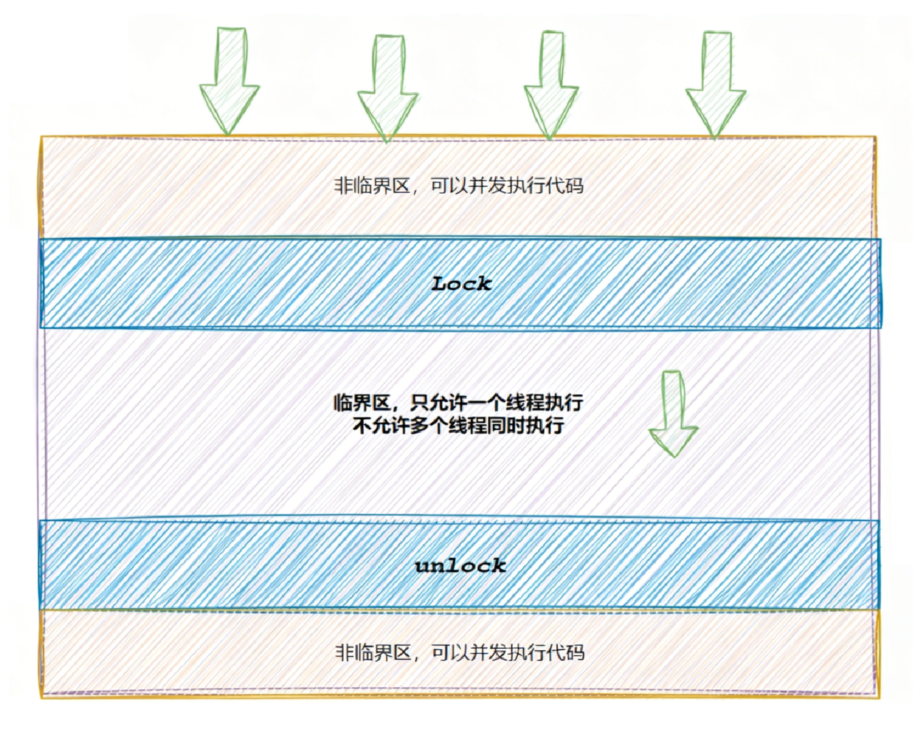 • 如果多个线程同时要求执⾏临界区的代码,并且临界区没有线程在执⾏,那么只能允许⼀个线程进⼊该临界区。