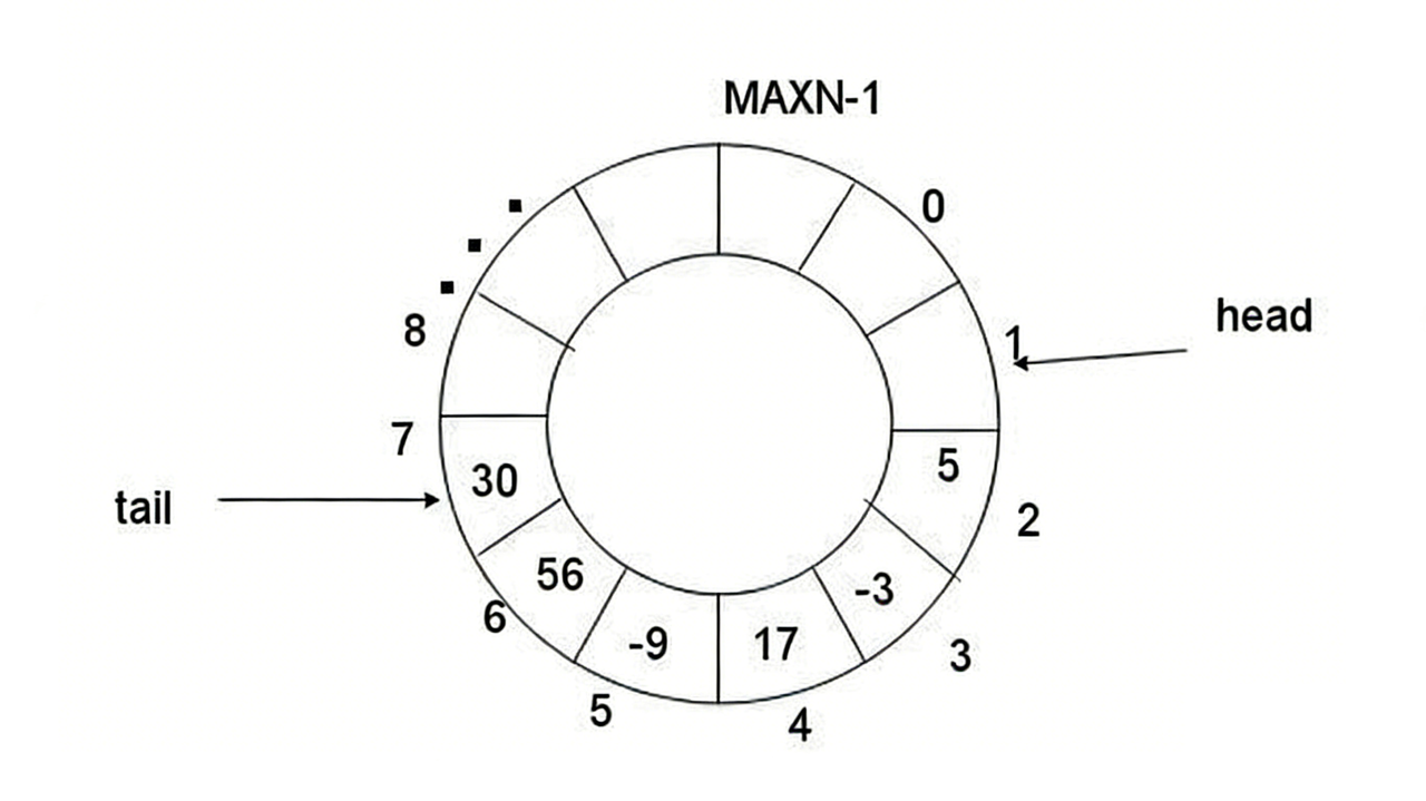 • 环形队列采⽤数组模拟,⽤模运算来模拟环状特性