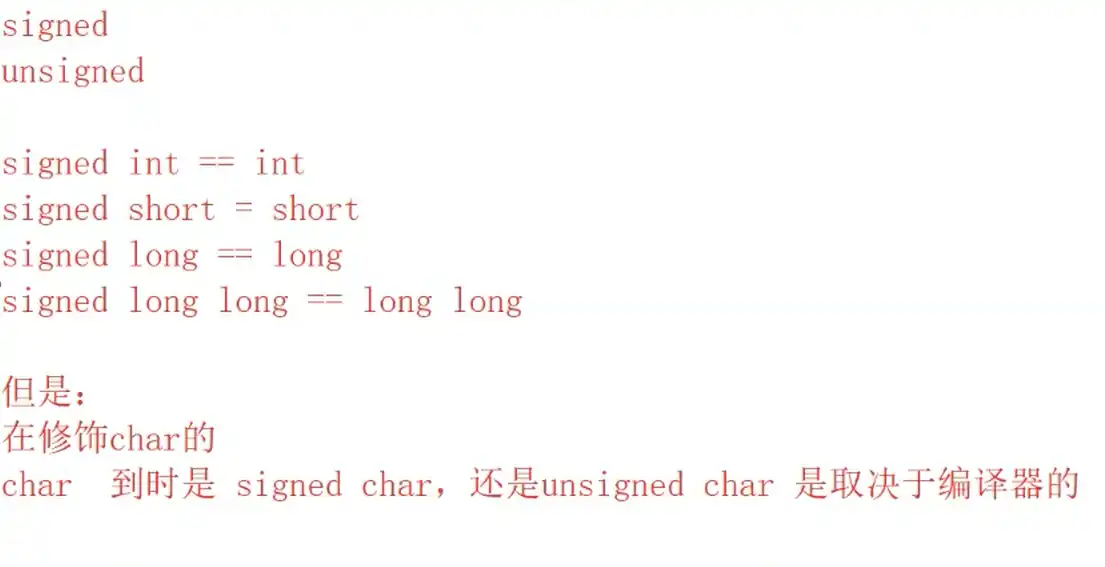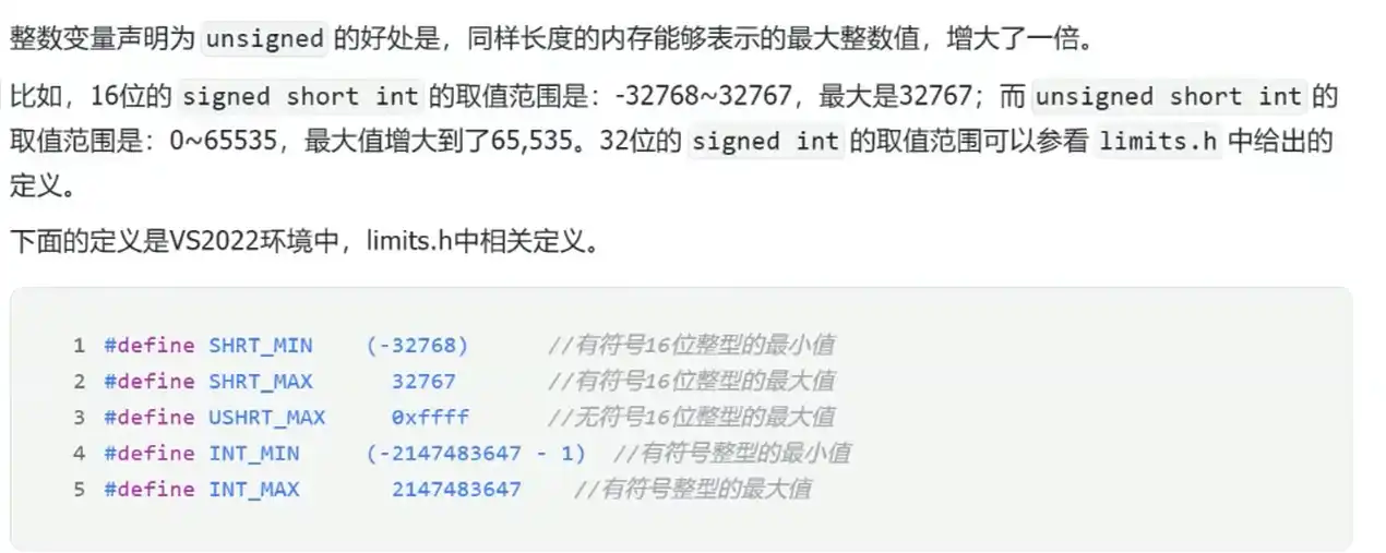 signed和unsigned(无符号整数不能存放负数 )
