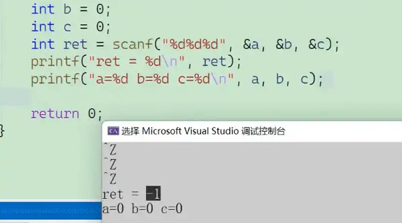 结束方法:输入字符返回0或者三次Ctrl+Z返回-1