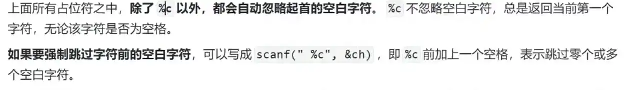 如果跳过空格在%c前加空格