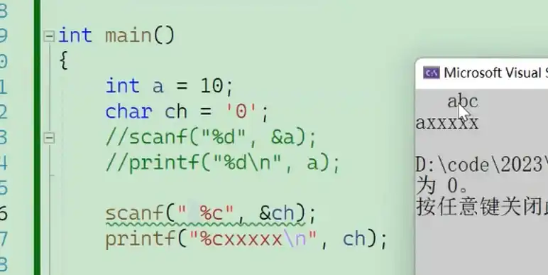 注:%c不会跳过空格
