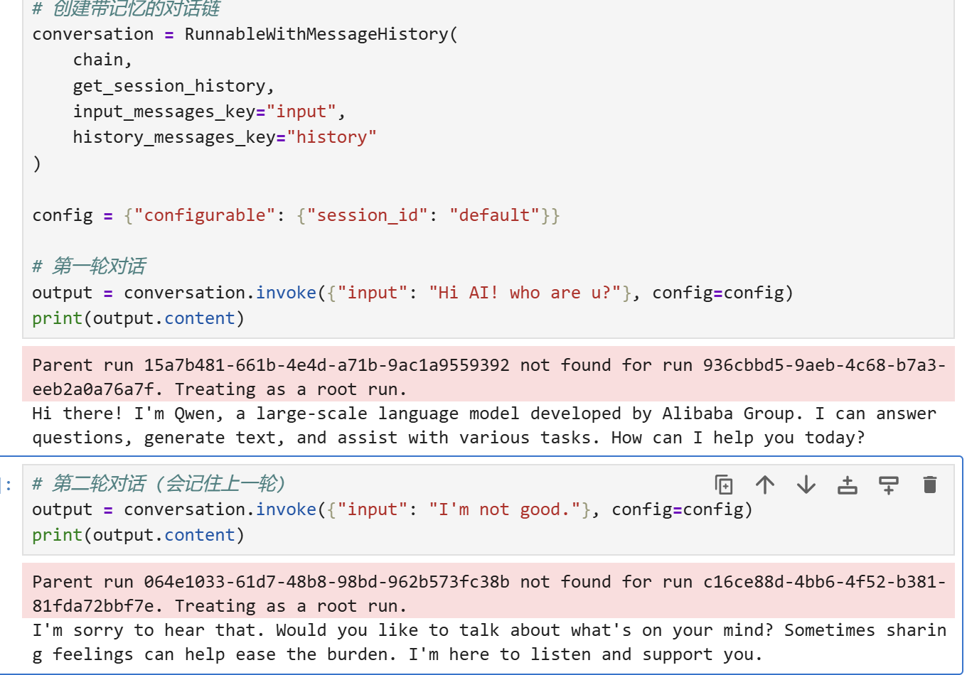 Memory:记忆,用来保存和模型交互时的上下文