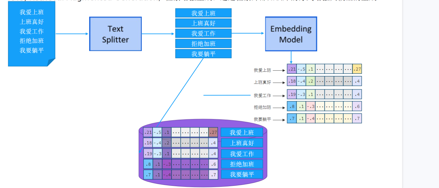 文本如何变成向量? 嵌入模型可以将句子、段落映射到一个高维空间(例如1536维)中的一个点。语义相似的文本,在这个高维空间中的向量点距离也会很近。