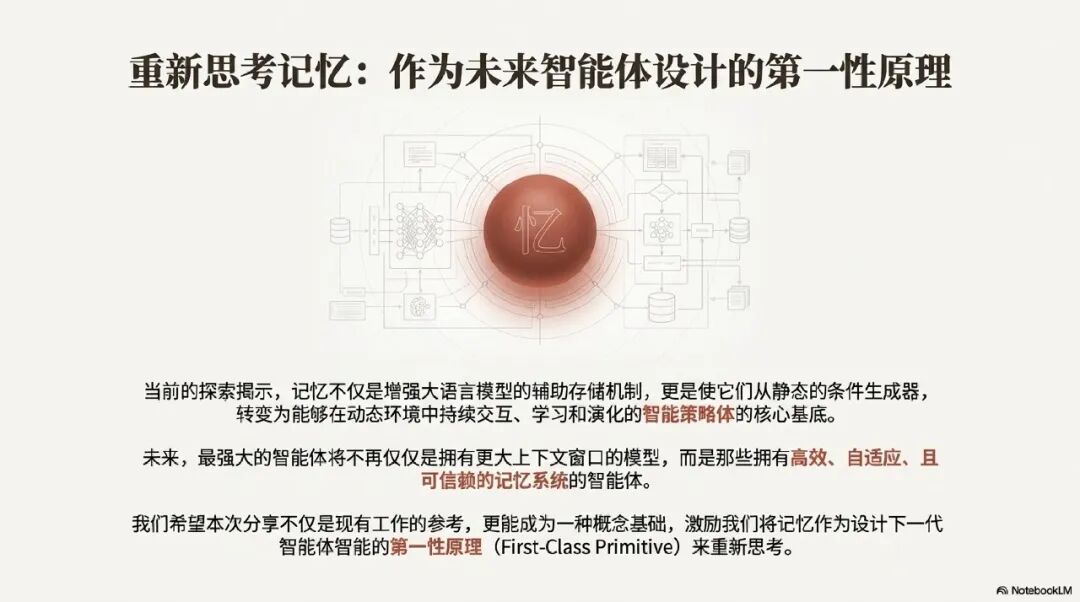 - 可信赖记忆(Trustworthiness):解决记忆污染、知识误传和偏见问题。未来的记忆系统需要具备可追溯性(Provability)和可解释性(Interpretability)。