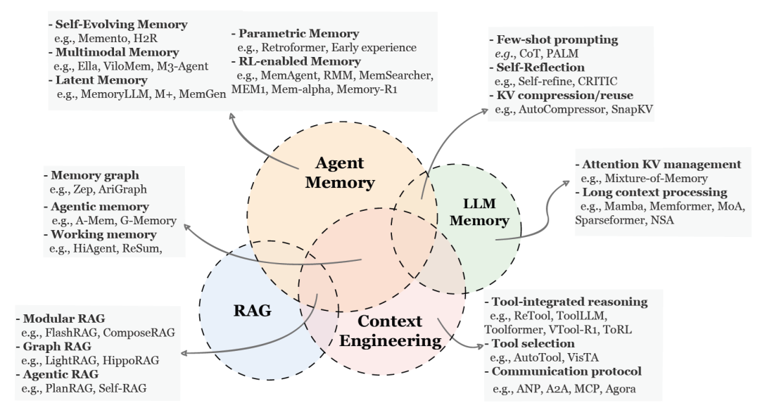 该综述的发布背景是AI领域从静态大型语言模型(LLM)向动态AI代理(AI Agents)的迅猛演进。AI代理被设计用于处理长时序任务、持续适应环境和进行复杂交互,但其内在的核心挑战在于LLM的“短期失忆”。