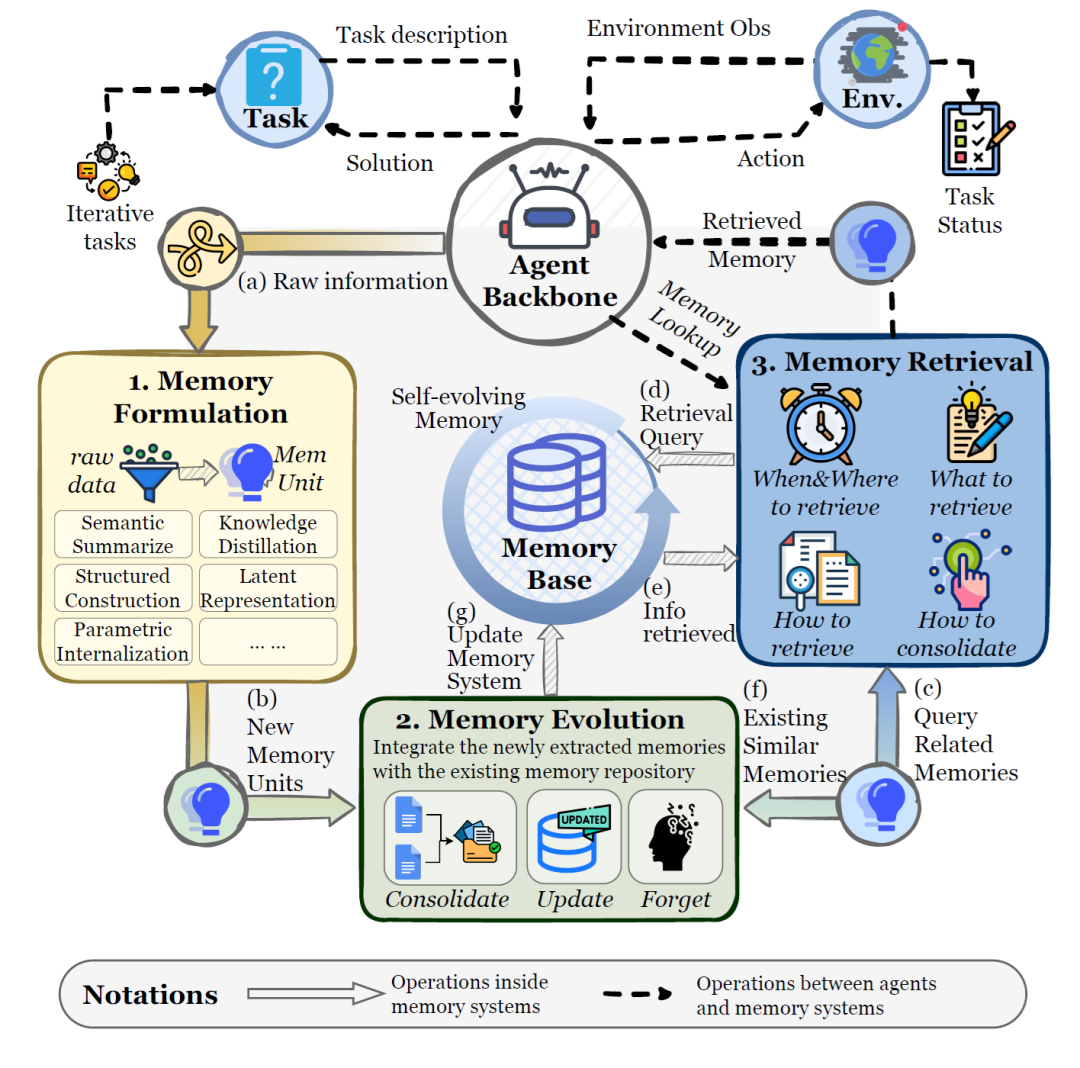- 记忆自动化(Memory Automation):让智能体自主决定何时、何地、存储什么,以及如何检索。这种“操作系统式(OS-like)”抽象,类似人类对记忆的主动管理,是提升代理智能的关键。