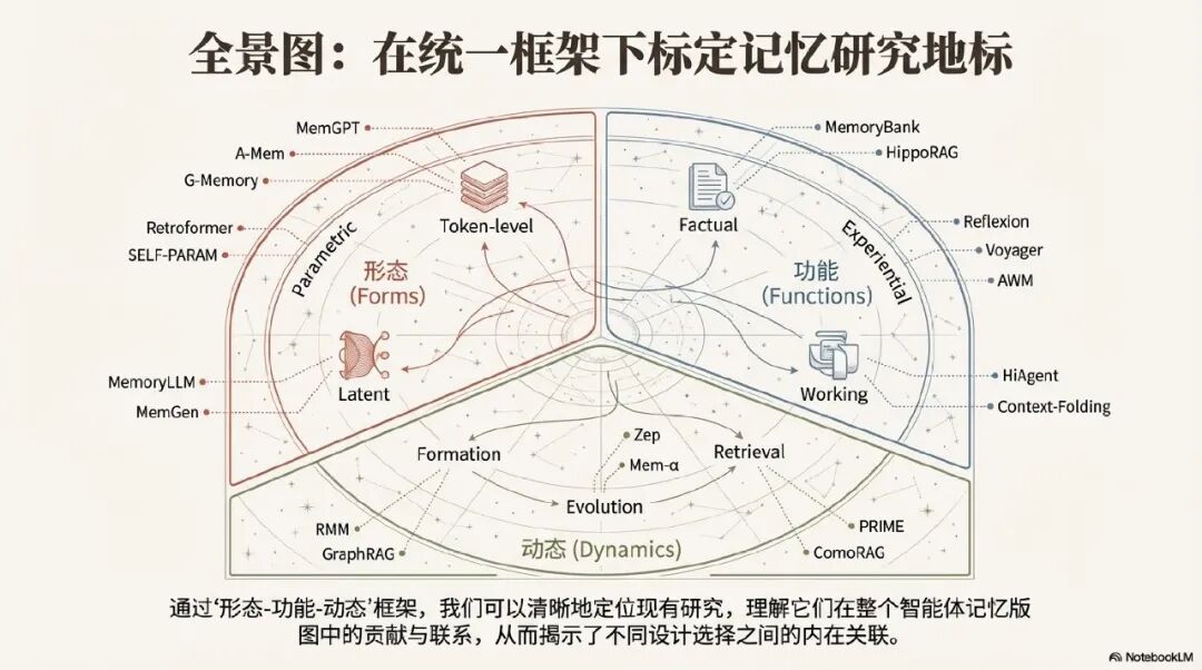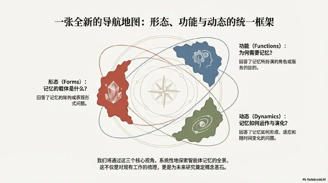 鉴于代理记忆领域日益碎片化、术语定义松散且评估协议差异巨大,传统的“长/短期记忆”分类已不足以捕捉当代系统的多样性和动态性。该综述的核心贡献是提出了一个统一的“形式(Forms)、功能(Functions)和动态(Dynamics)”三角框架,为理解、设计和评估先进的智能体记忆系统提供了清晰的蓝图。