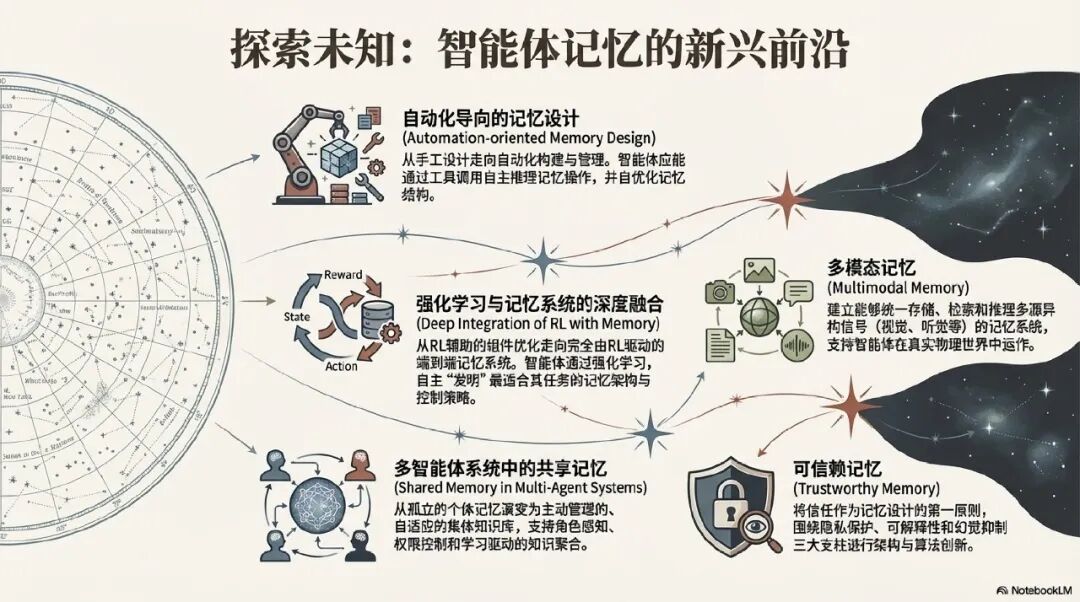 该综述不仅梳理了现有技术,更系统性地指明了智能体记忆研究和产业实践的未来方向。