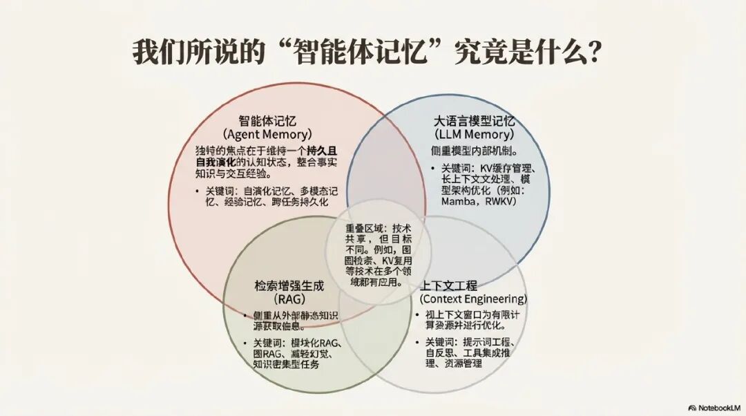 | 概念 | 核心关注点 | 与智能体记忆的区别 |
