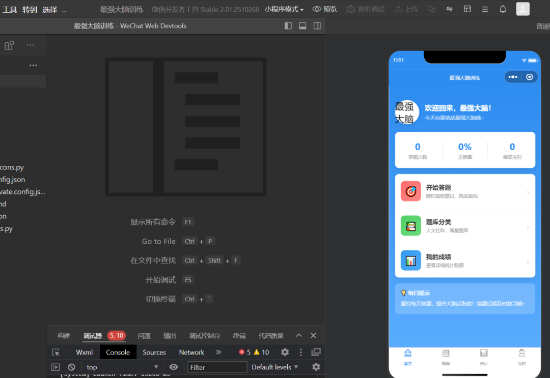 再将生成的代码按照要求导入微信开发者工具(想尝试小程序一定要提前下载),项目导入后会自动编译,左侧模拟器会显示小程序界面,点击小程序界面即可运行各项功能