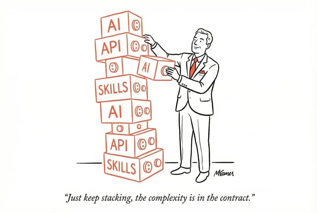 传统的封装和渐进式披露,都依赖程序化接口,你得知道具体调用哪个函数、传什么参数、返回值是什么,错一个字母都调用不通。