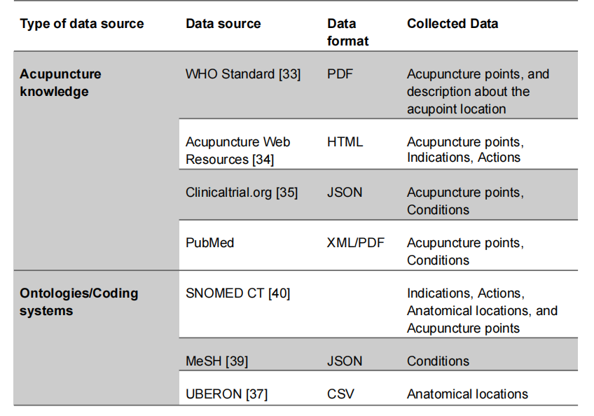 这些数据源为构建细粒度和可靠的知识图谱提供了坚实基础,促进了针灸相关信息的标准化和整合。