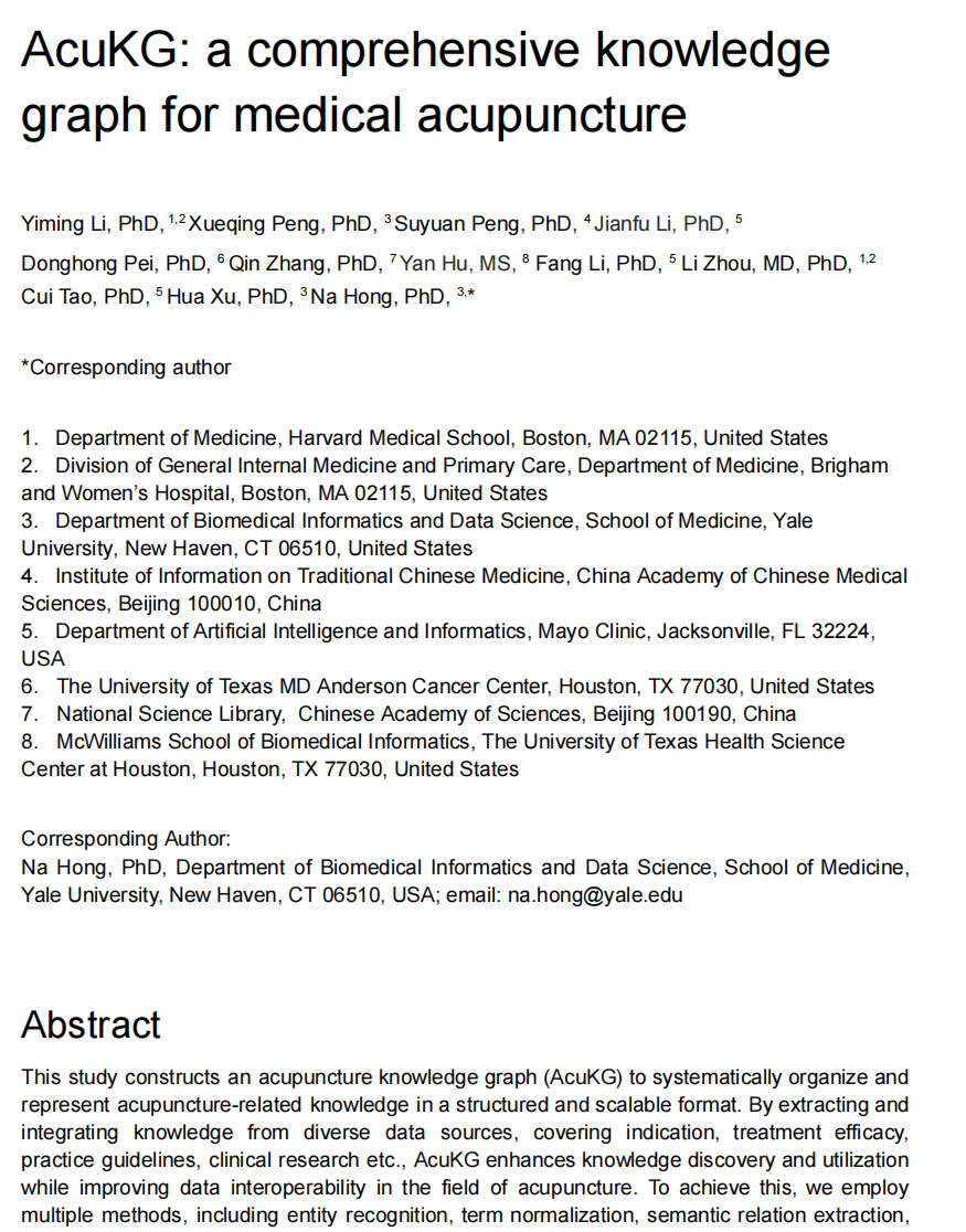 这项工作不仅为针灸研究和临床实践提供了强大的知识基础设施,也为传统医学与现代技术的融合探索了新路径。随着人工智能技术的不断发展,AcuKG有望在精准医疗、临床决策支持和医学教育等领域发挥更大作用,推动针灸医学向循证化、标准化和智能化方向发展。