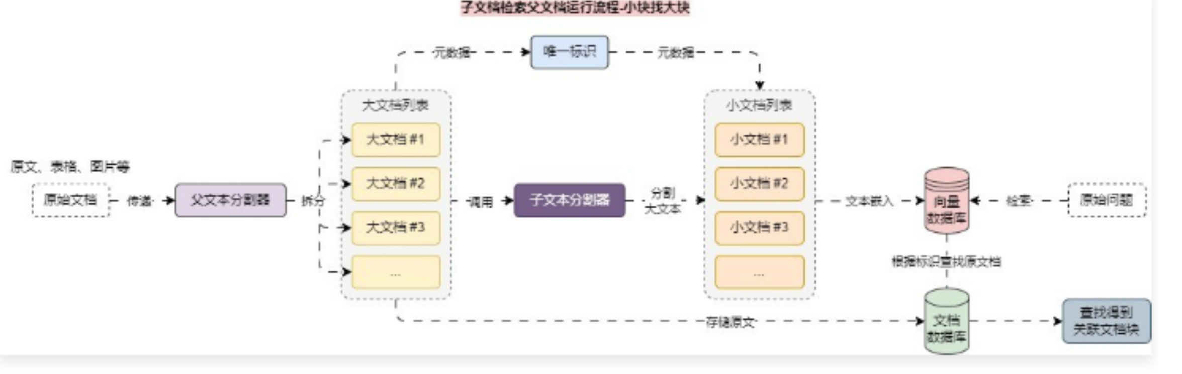 请注意,这里的“父文档”指的是小块来源的文档,可以是整个原始文档,也可以是切割后比较大的文档块。