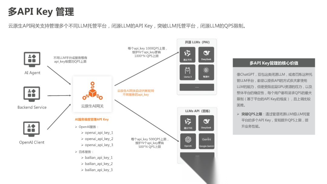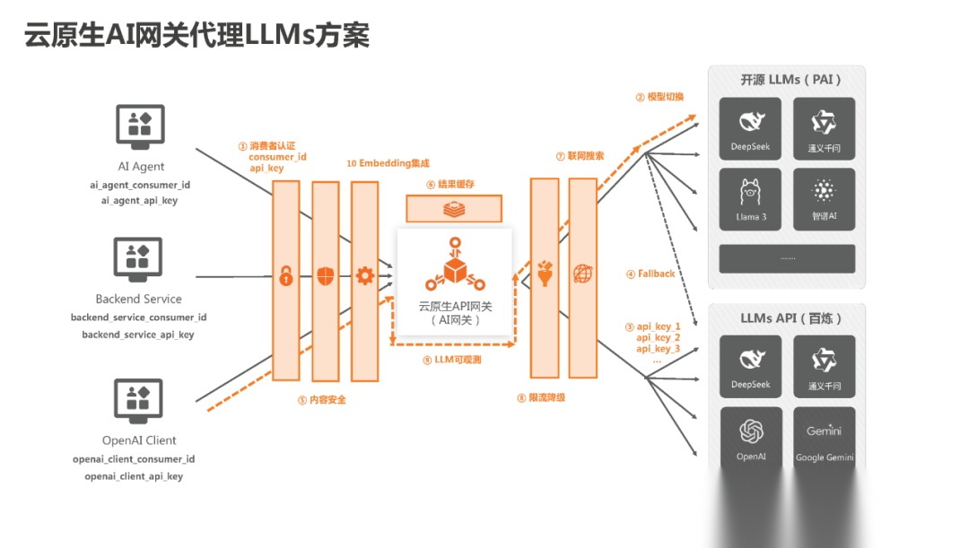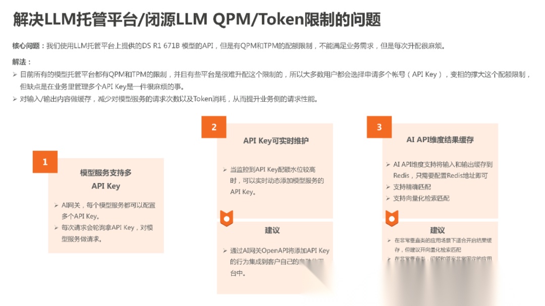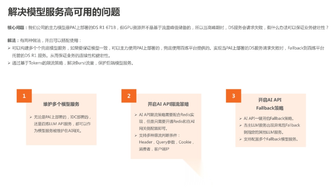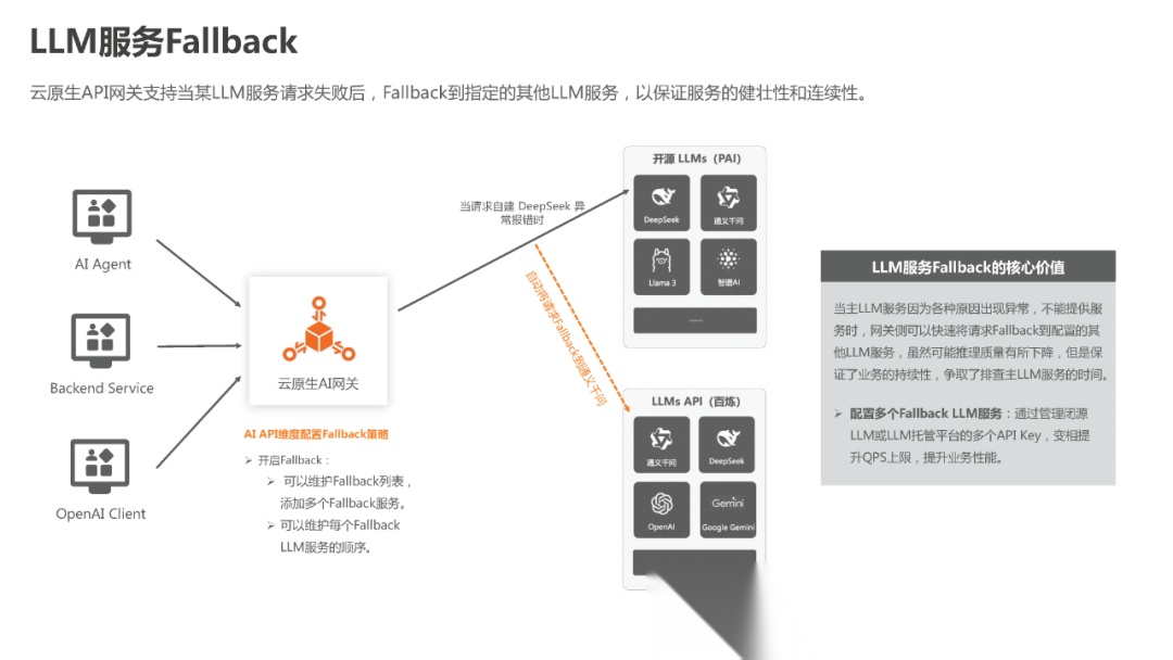 (3)大模型是个IT系统,也会出现故障甚至宕机,基于网关制定Failover机制,可以提升大模型的应用可用性。