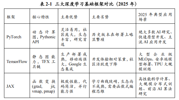 深度学习基础框架是AI开发者的“主战武器”,它们直接决定了研究和开发的效率、灵活性与性能。经过多年的激烈竞争,2025年的市场格局已然清晰:PyTorch凭借其灵活性和强大的社区生态,在学术界和工业界都占据了绝对的主导地位;TensorFlow凭借其在生产部署和移动端上的优势,仍在特定领域保有一席之地;而JAX则以其高性能和独特的函数式编程范式,在顶尖研究和大规模计算领域异军突起,成为不可忽视的新生力量。